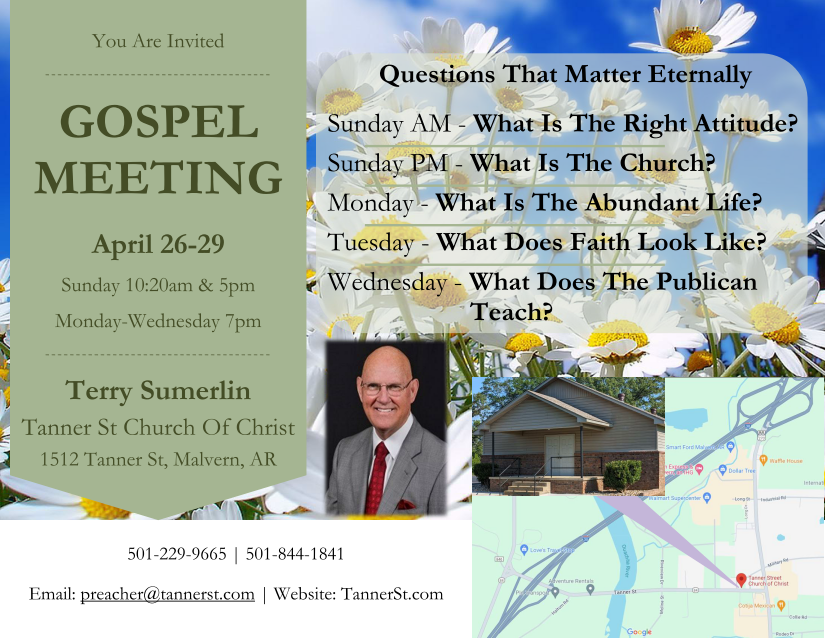 This website is the online presence of the Church of Christ that meets on Tanner St in Malvern, AR.